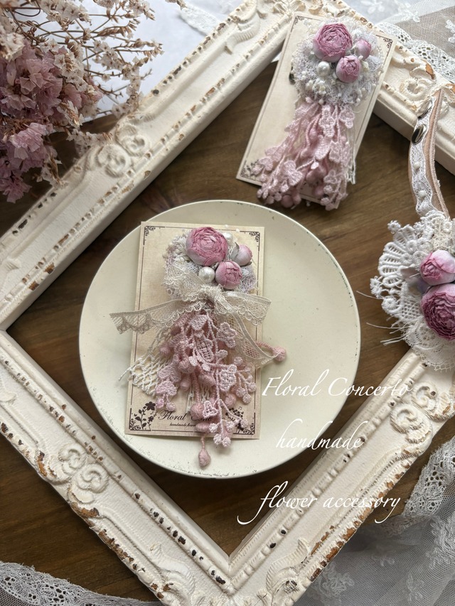 焦がしミルクの薔薇の4wayネックレス、バッグチャーム