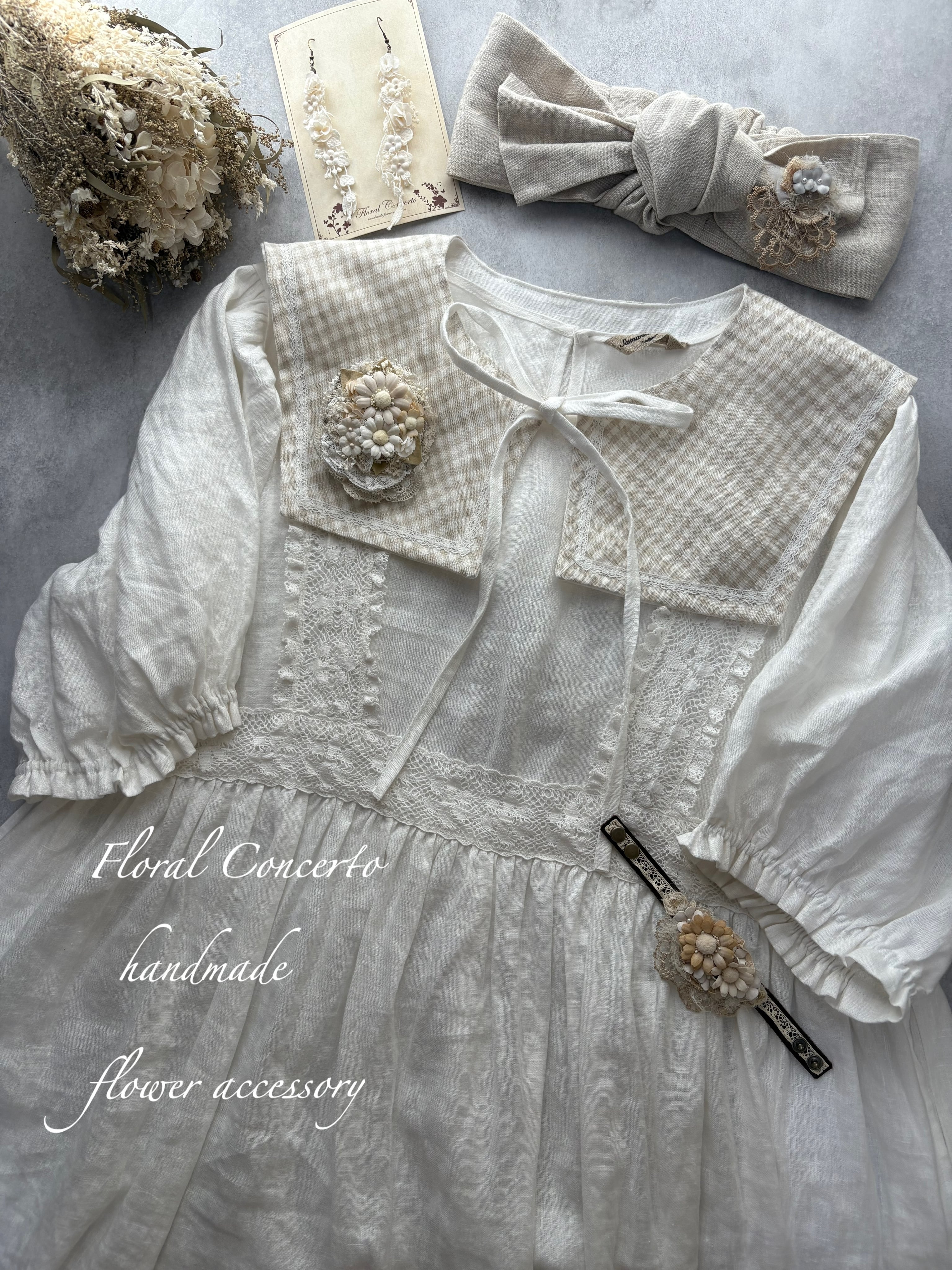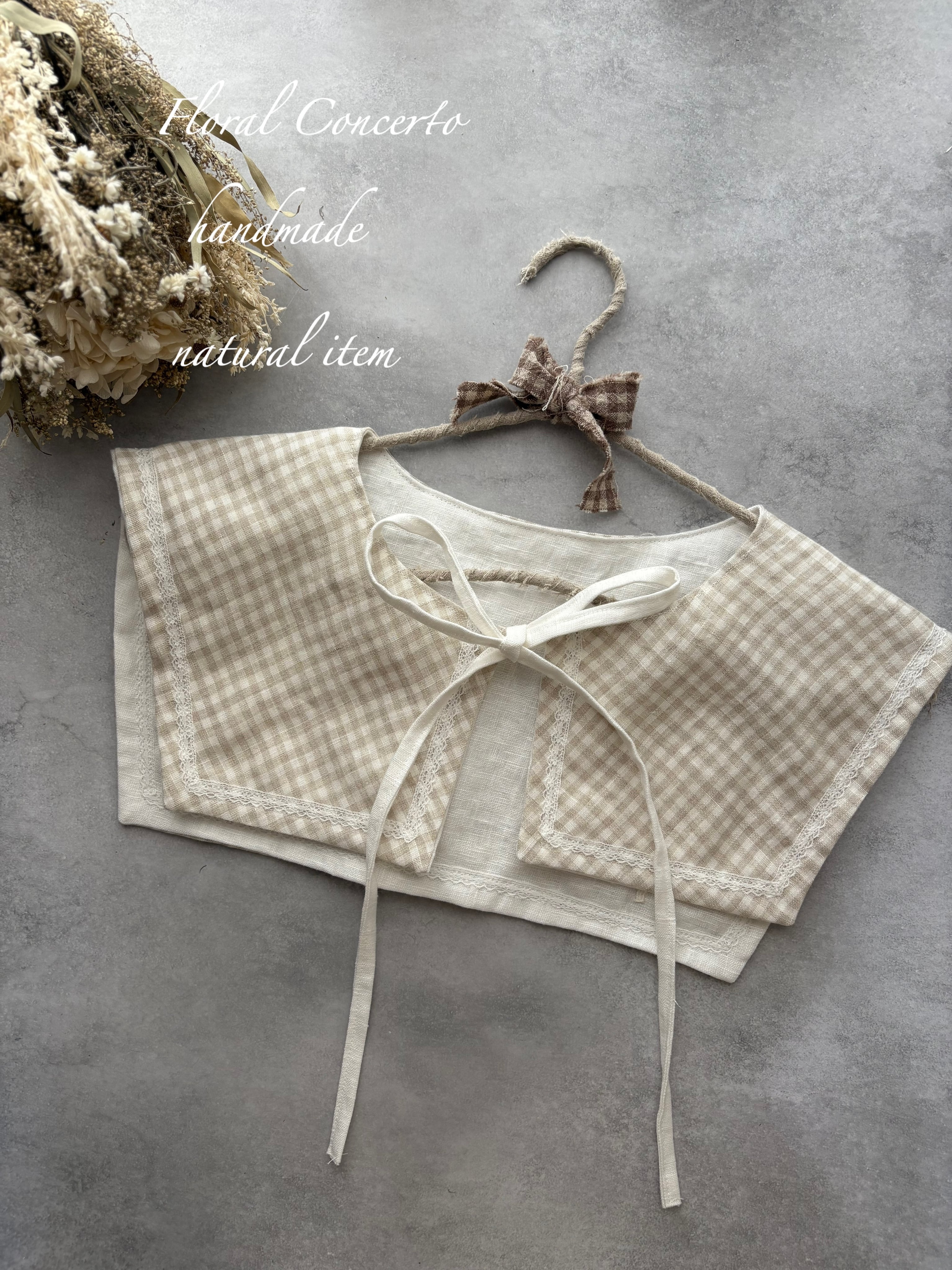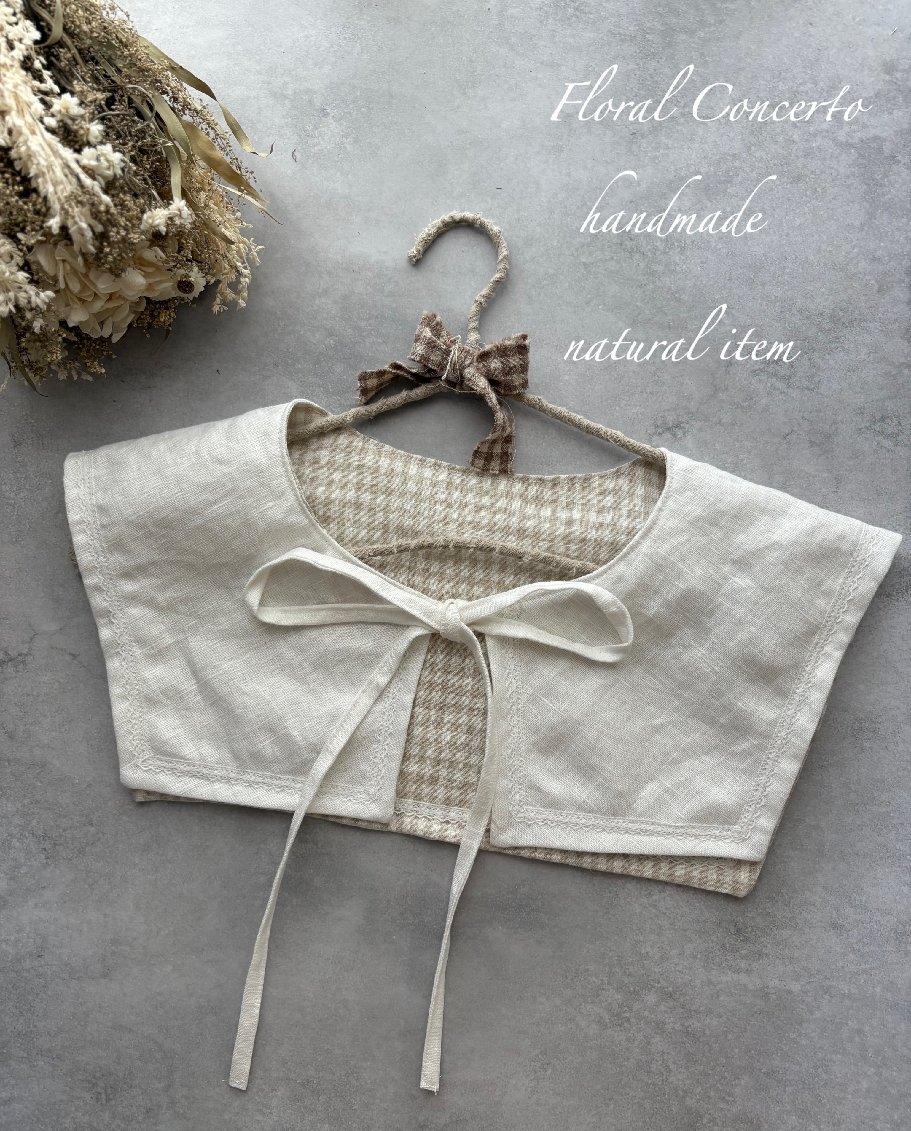 鈴蘭レースのリバーシブルスクエア付け襟(ホワイト×細ギンガム)