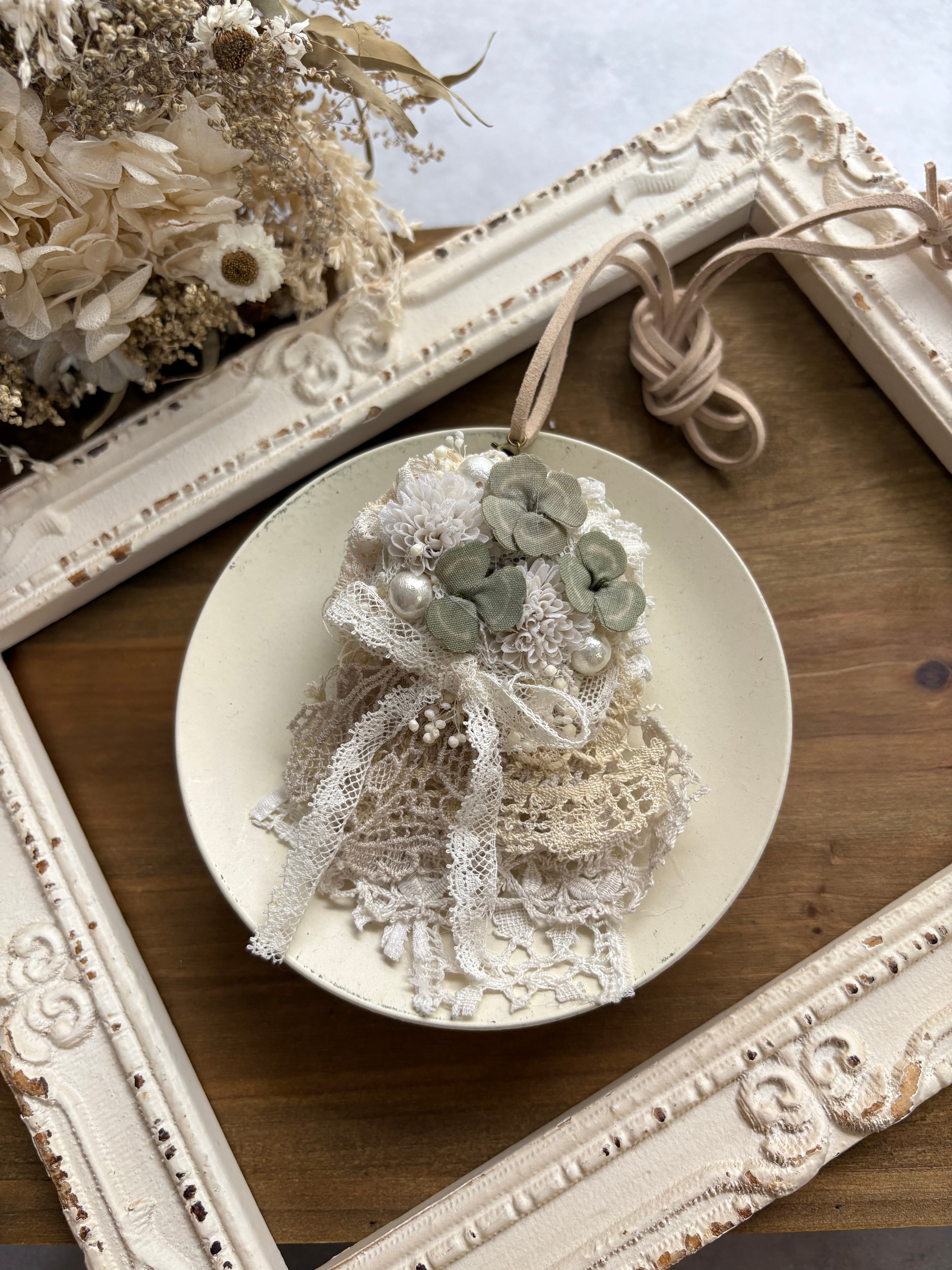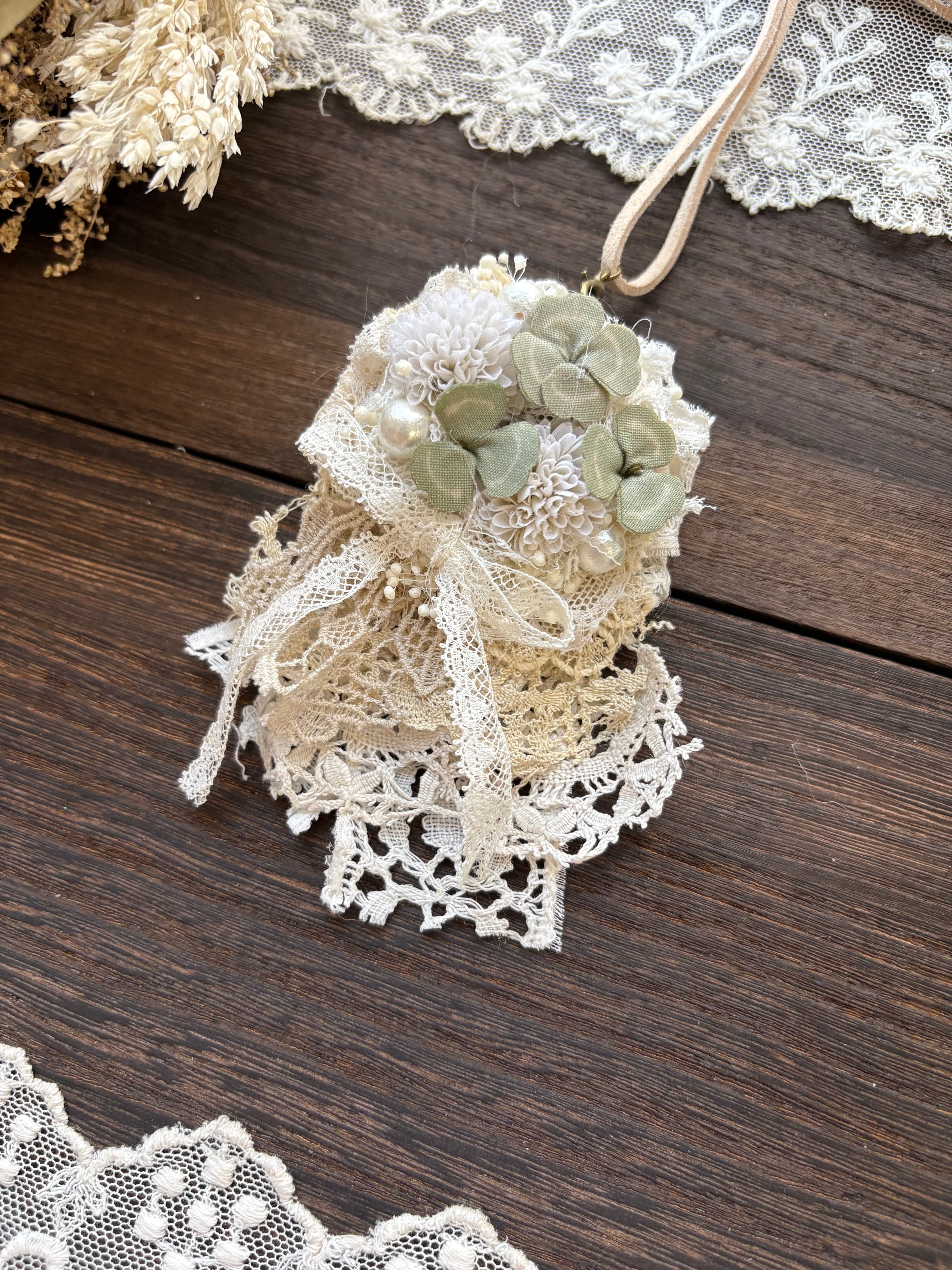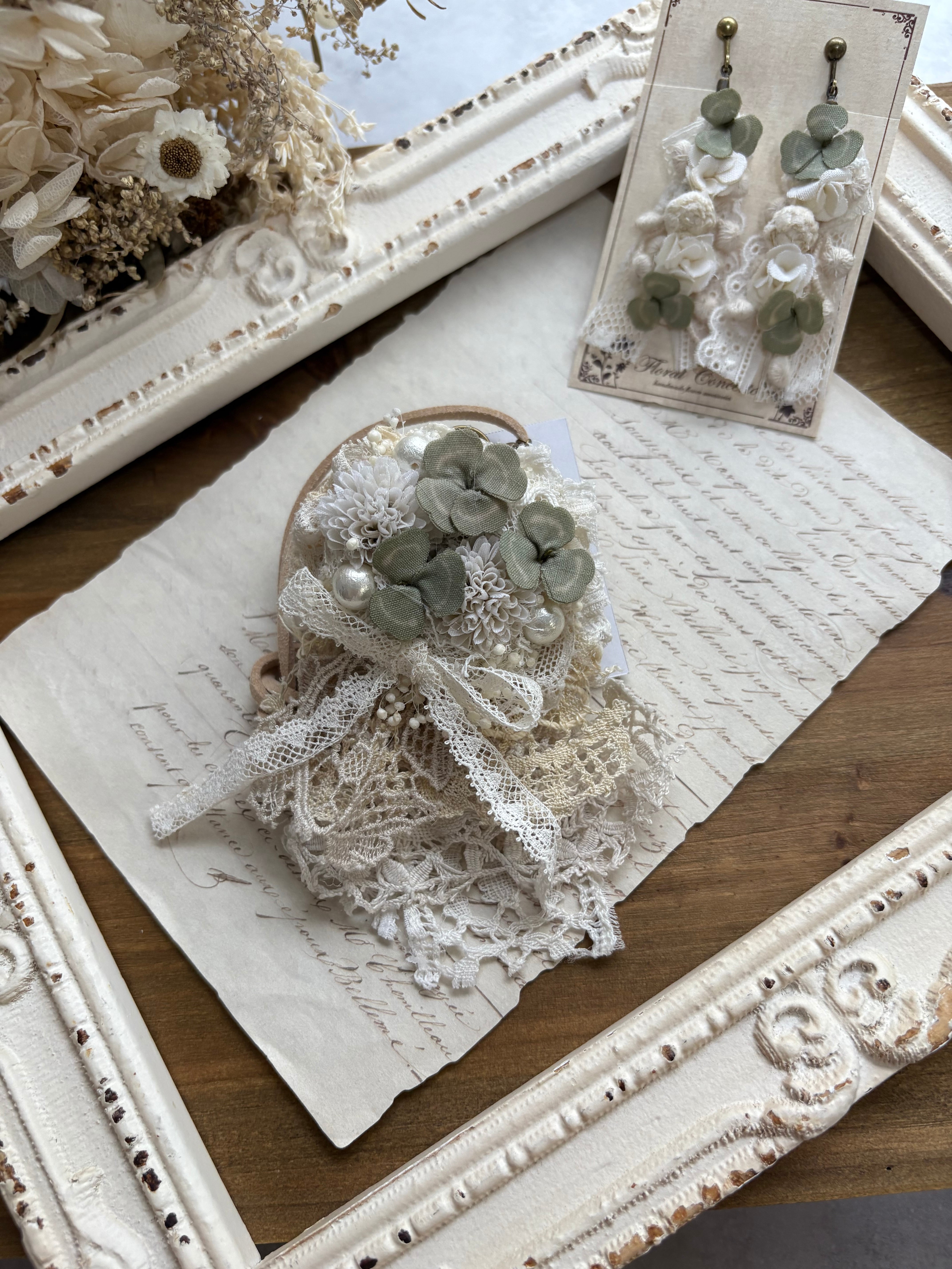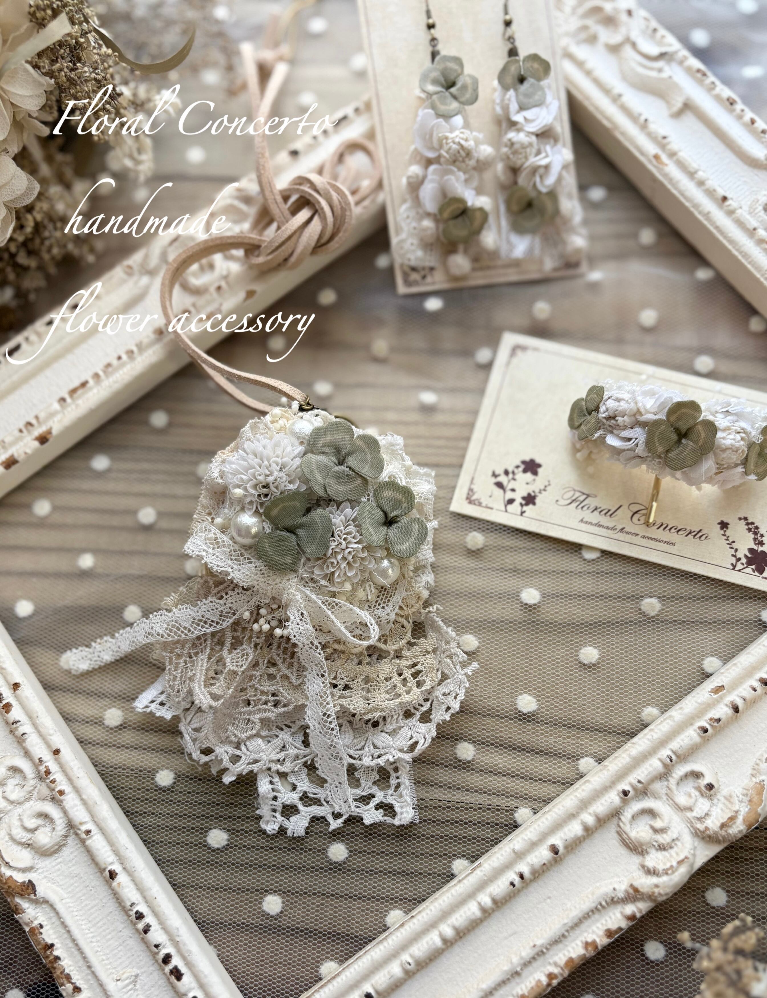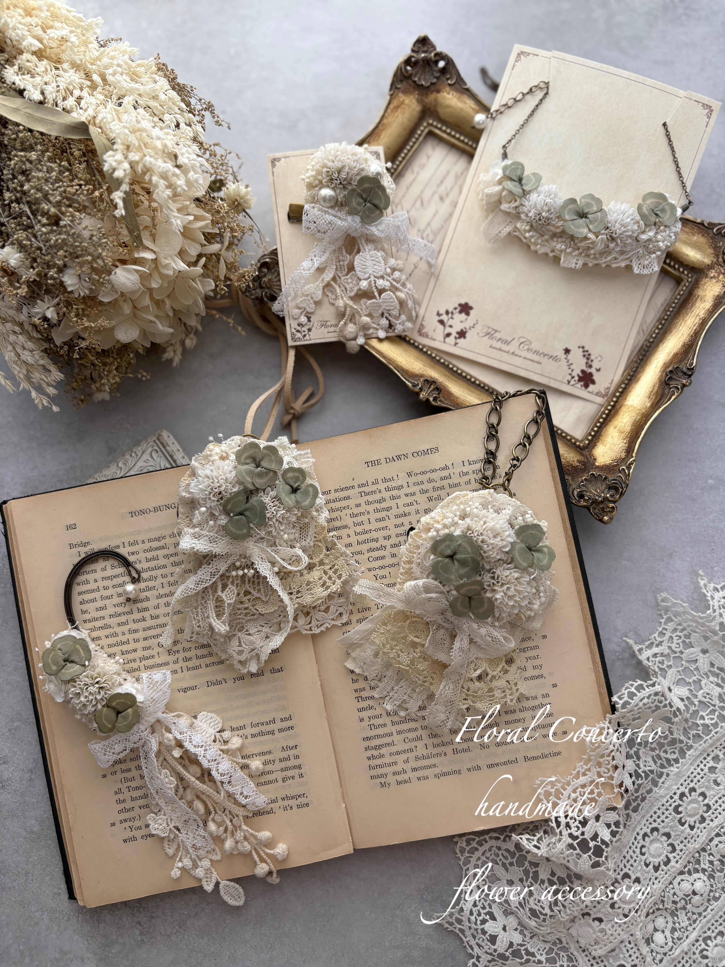 布花の白詰草とかすみ草プリザを合わせた3wayネックレスです。