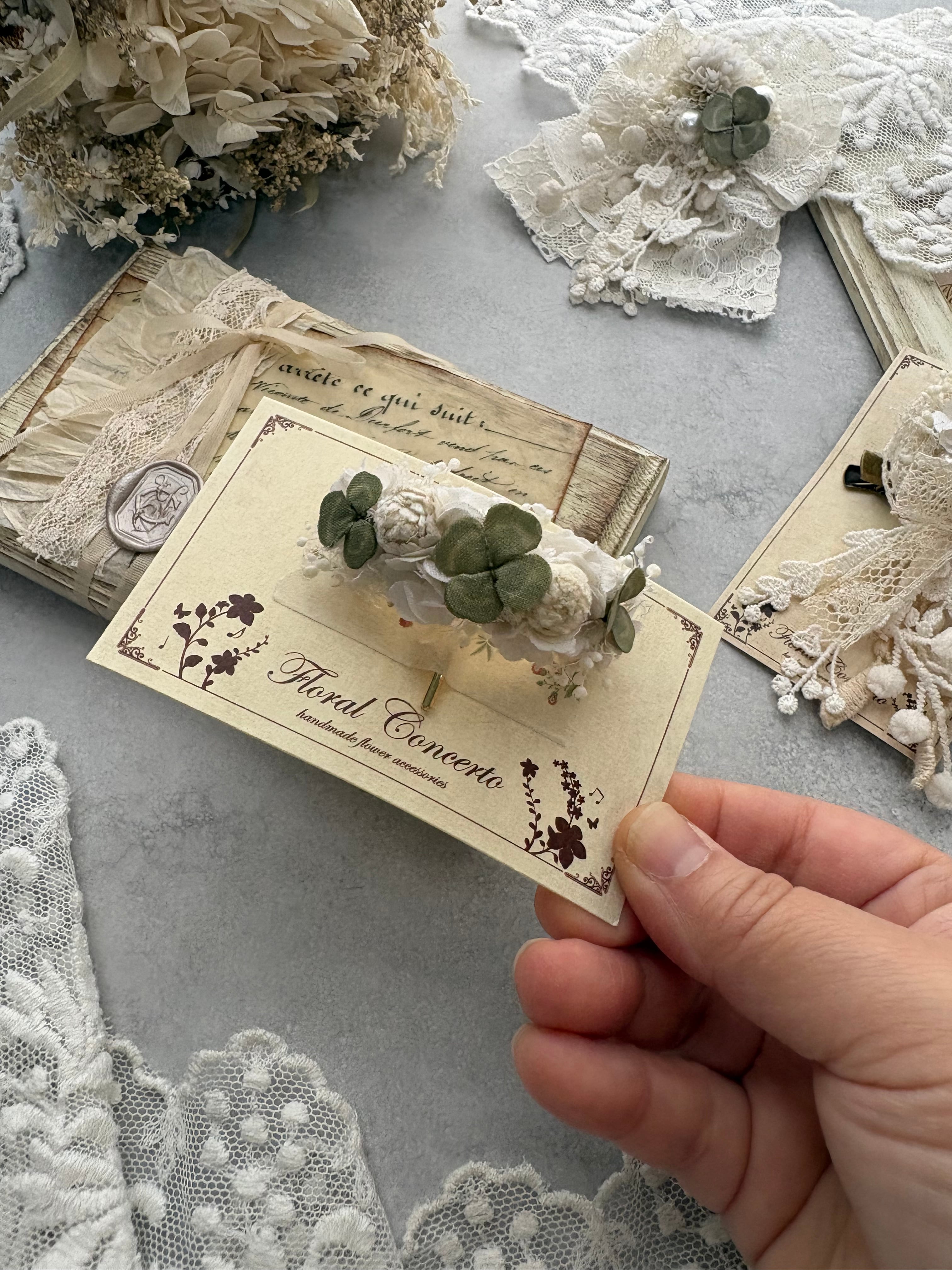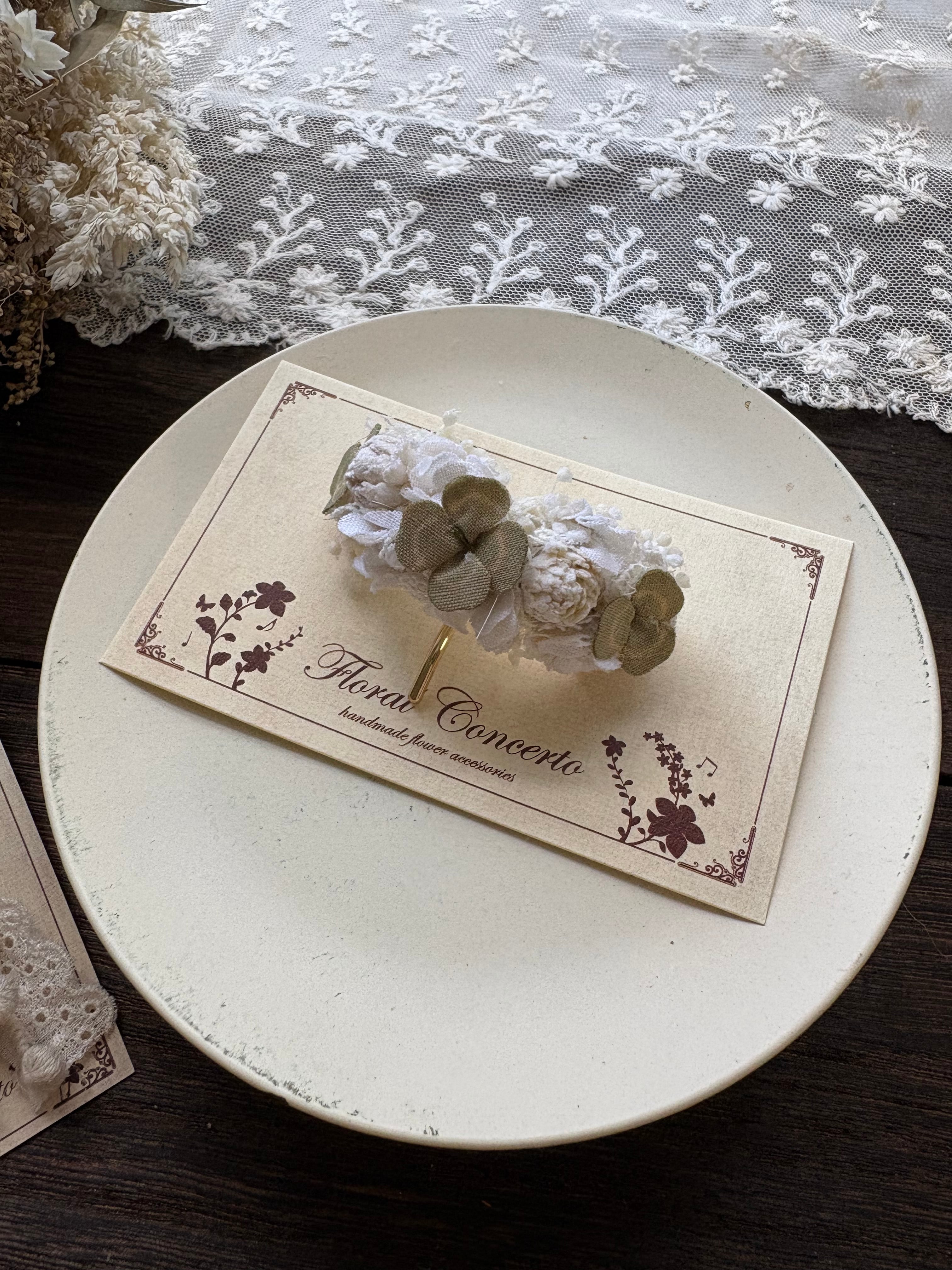 布花とかすみ草プリザを合わせたポニーフックです。