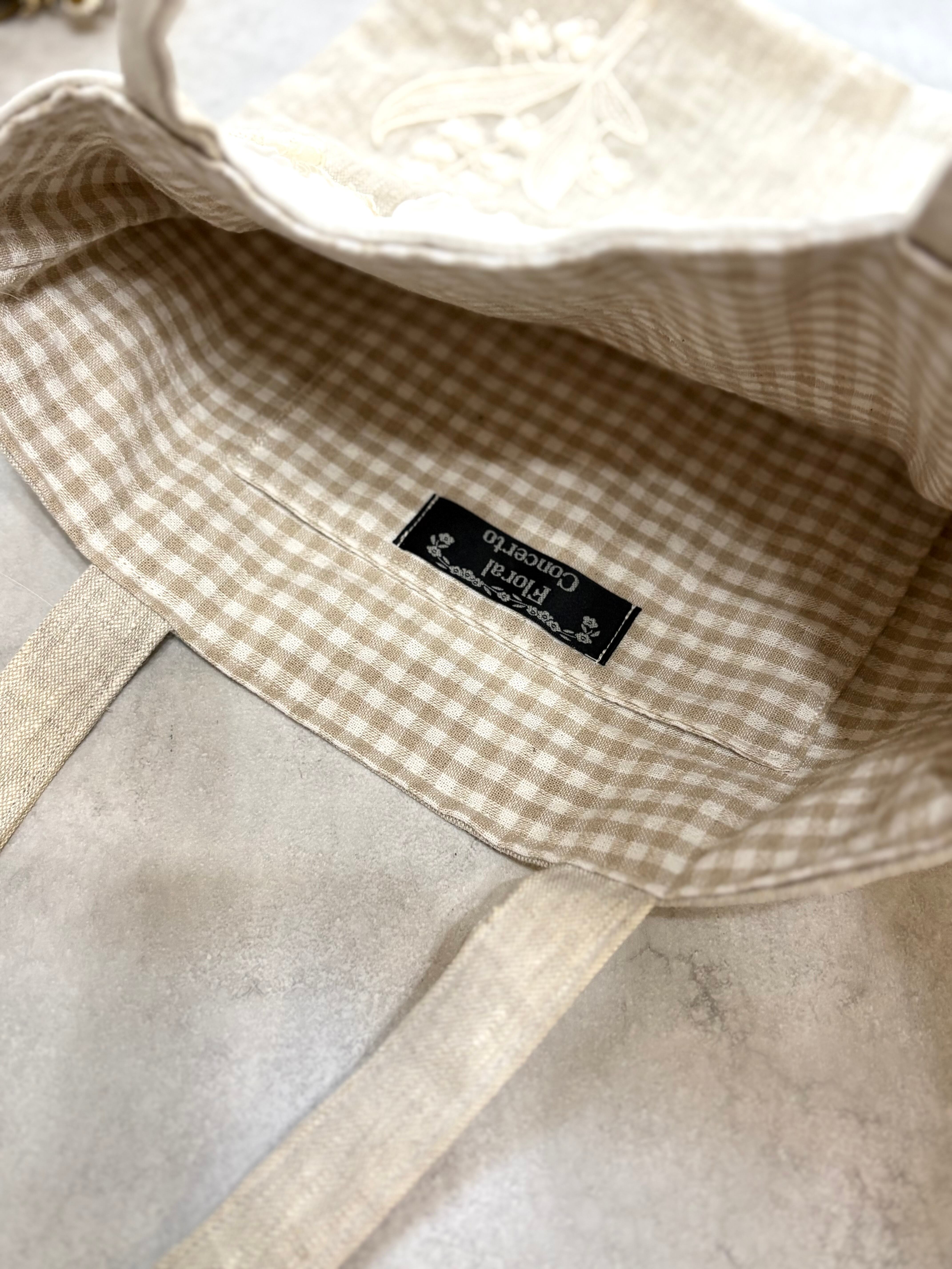 リネン100の生地で作ったトートバッグに、