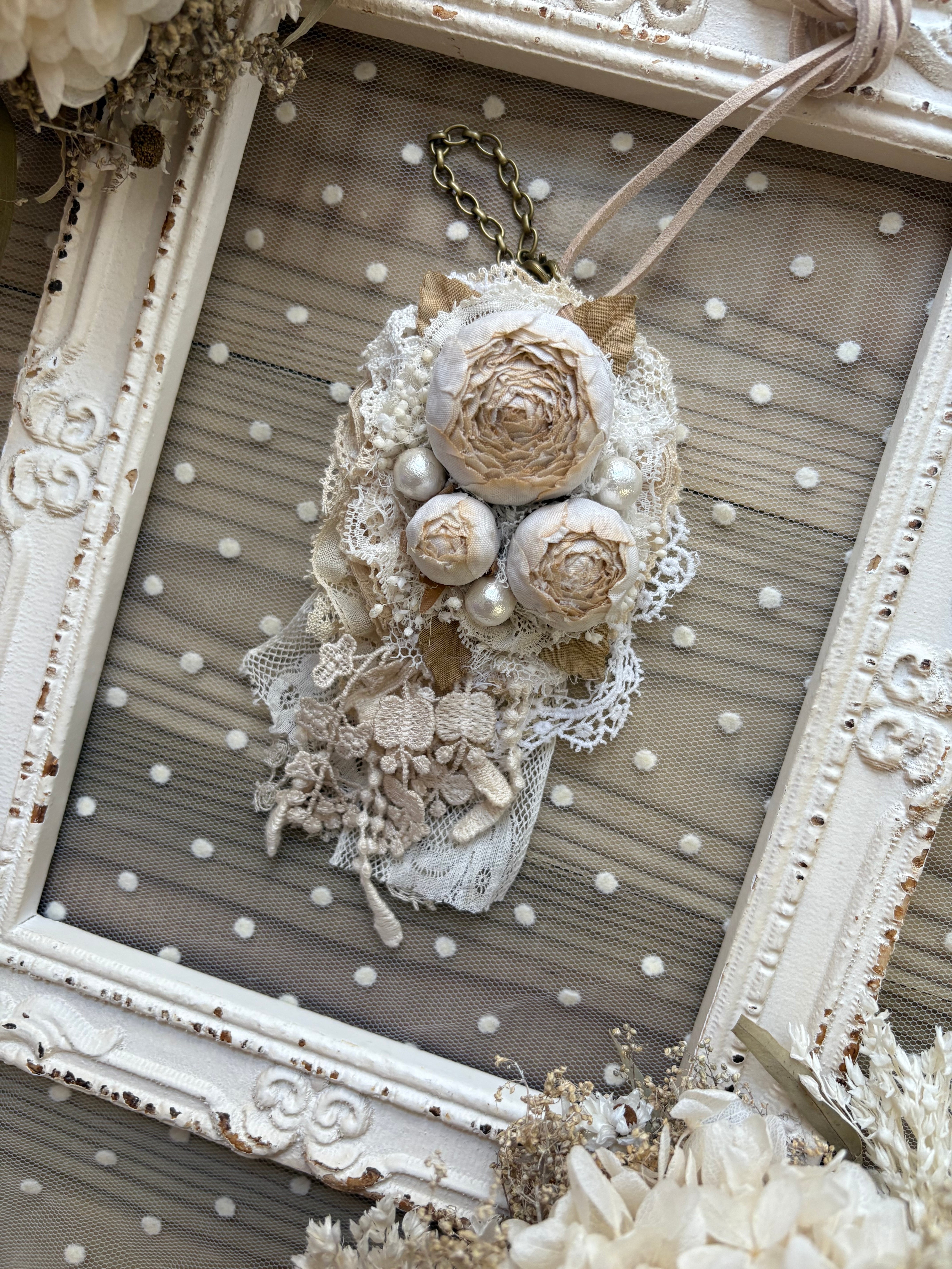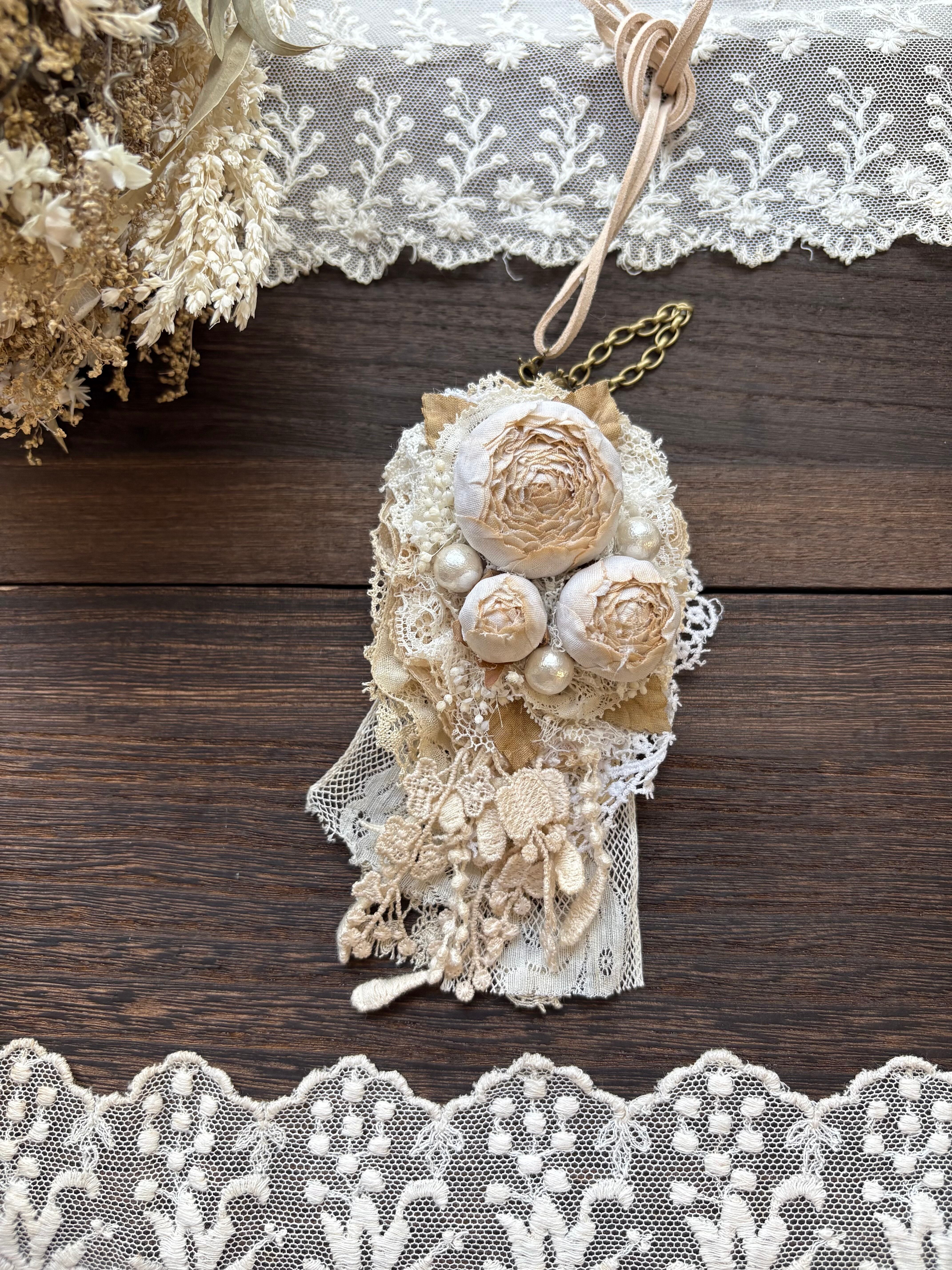 焦がしミルクの薔薇の4wayネックレス、バッグチャーム