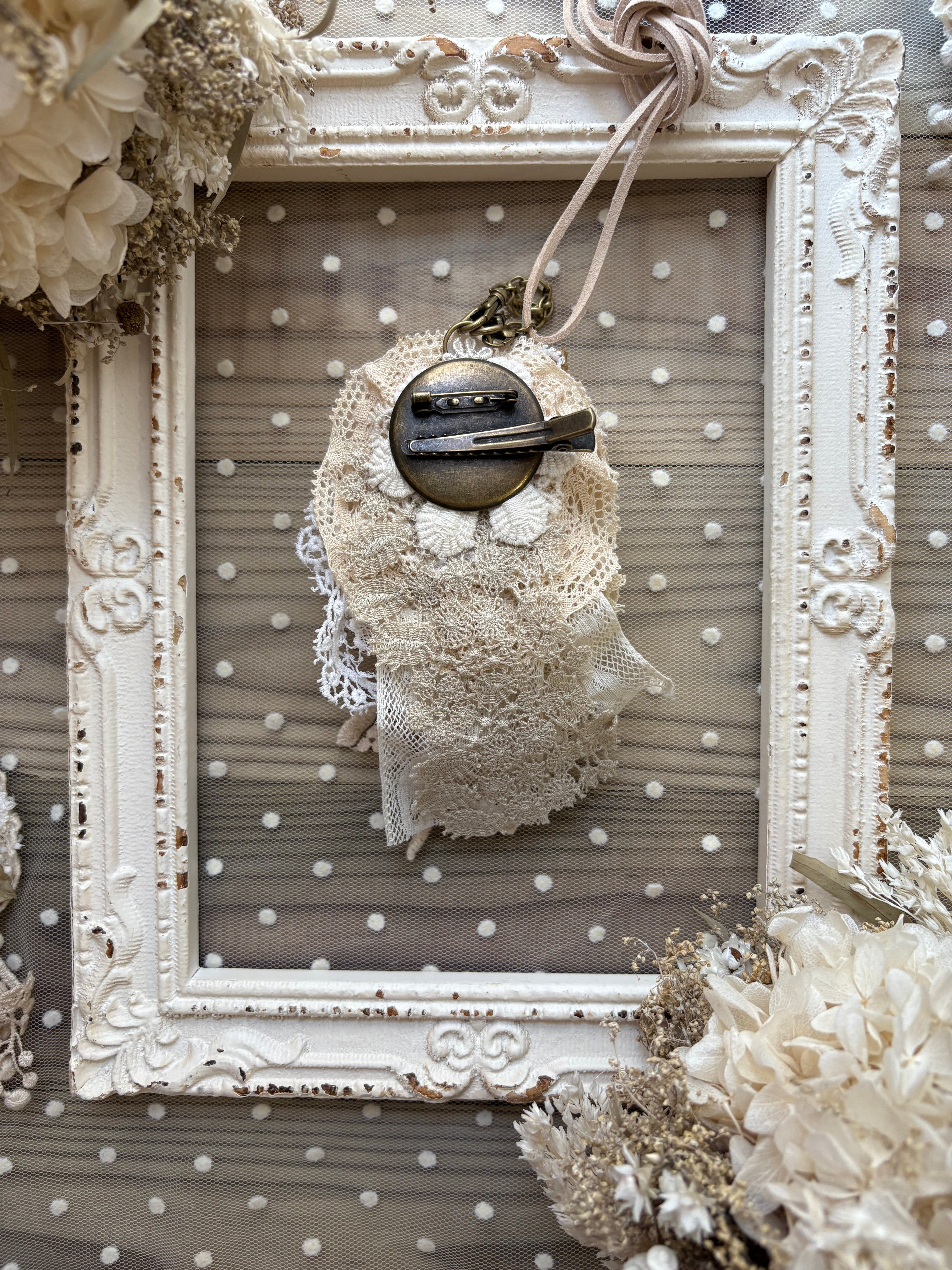 ブローチ、ネックレス、クリップ、バッグチャームとしてお使い頂けます。