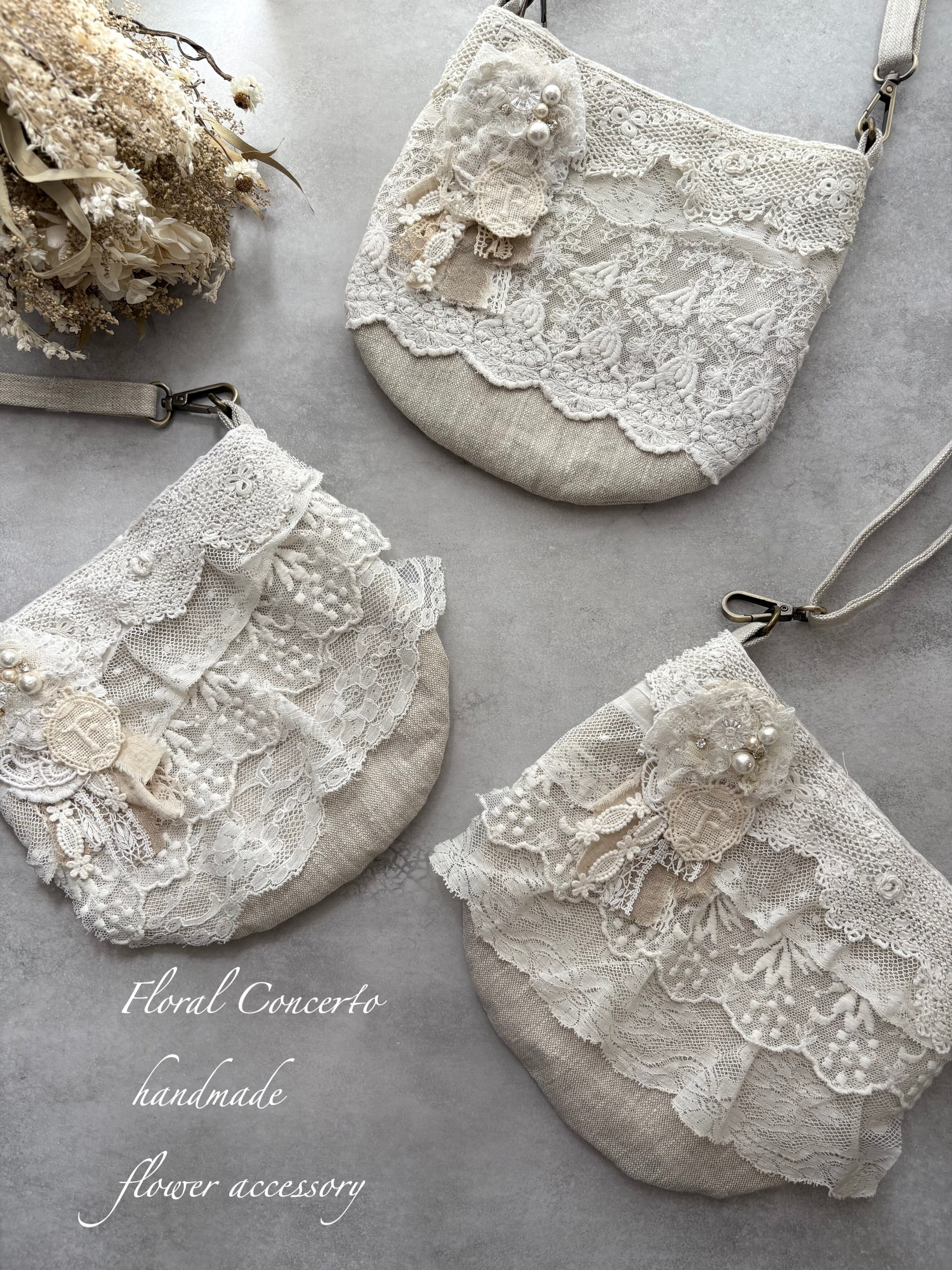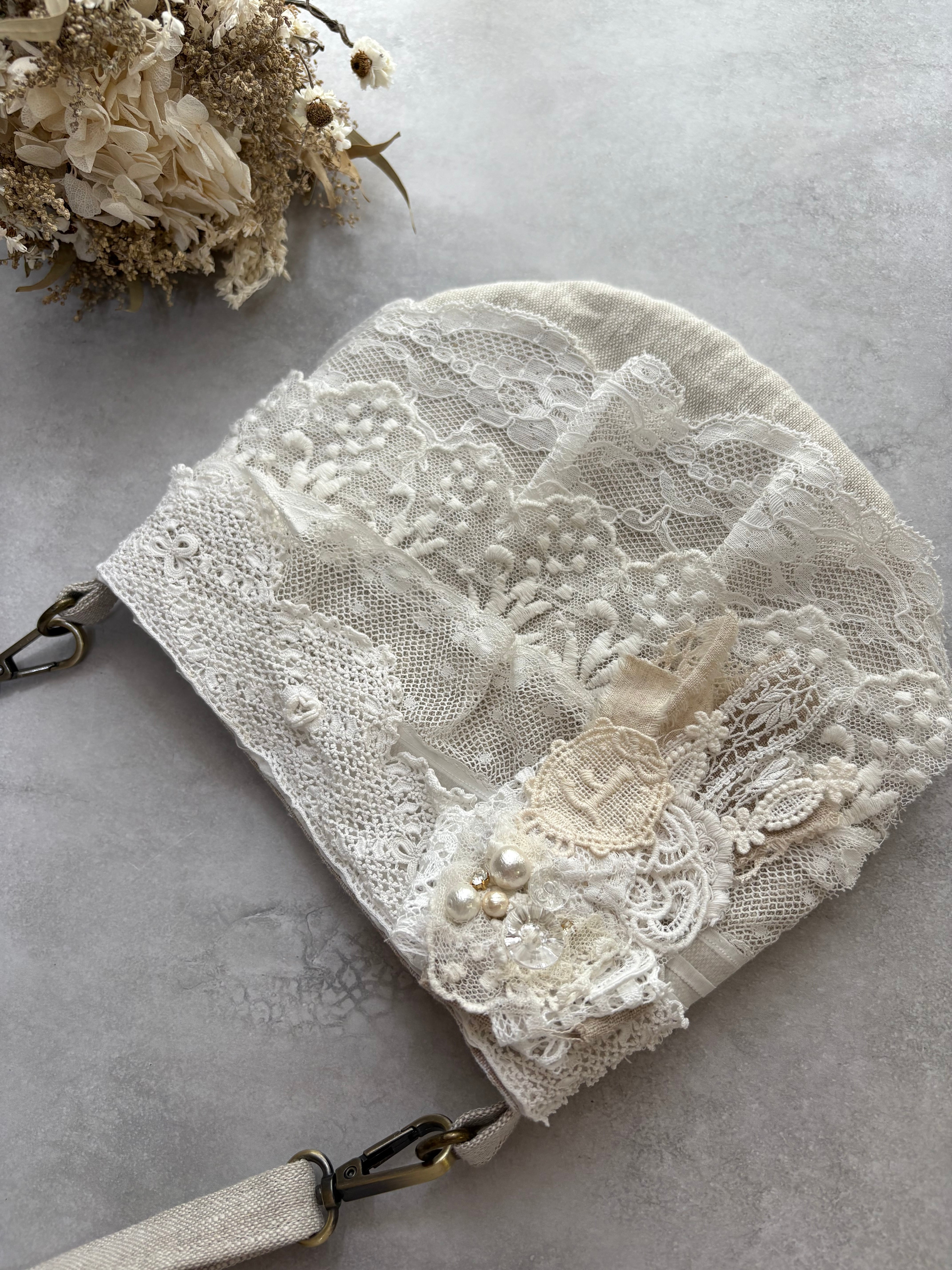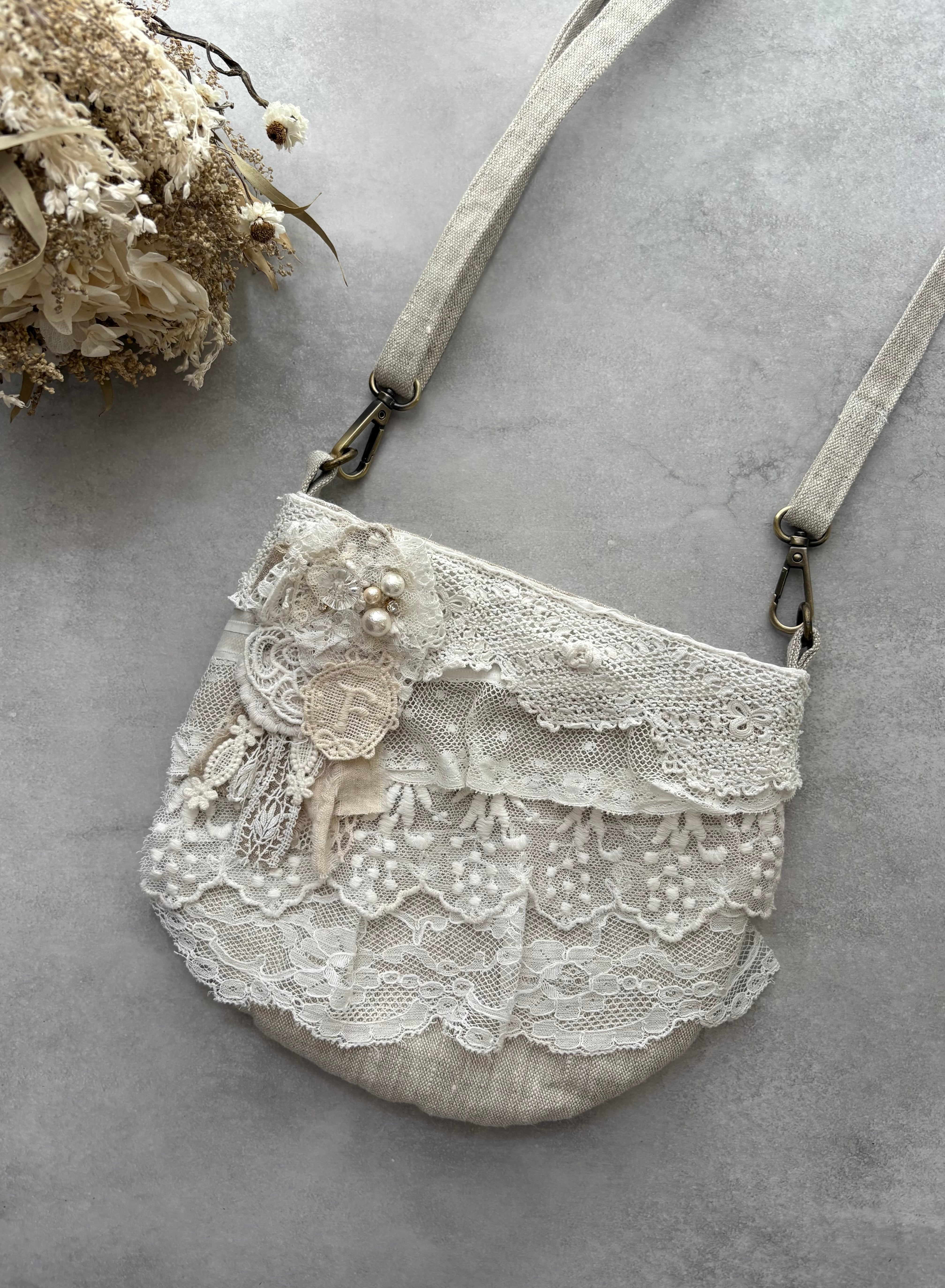 リネン100の生地で作ったポシェットに、