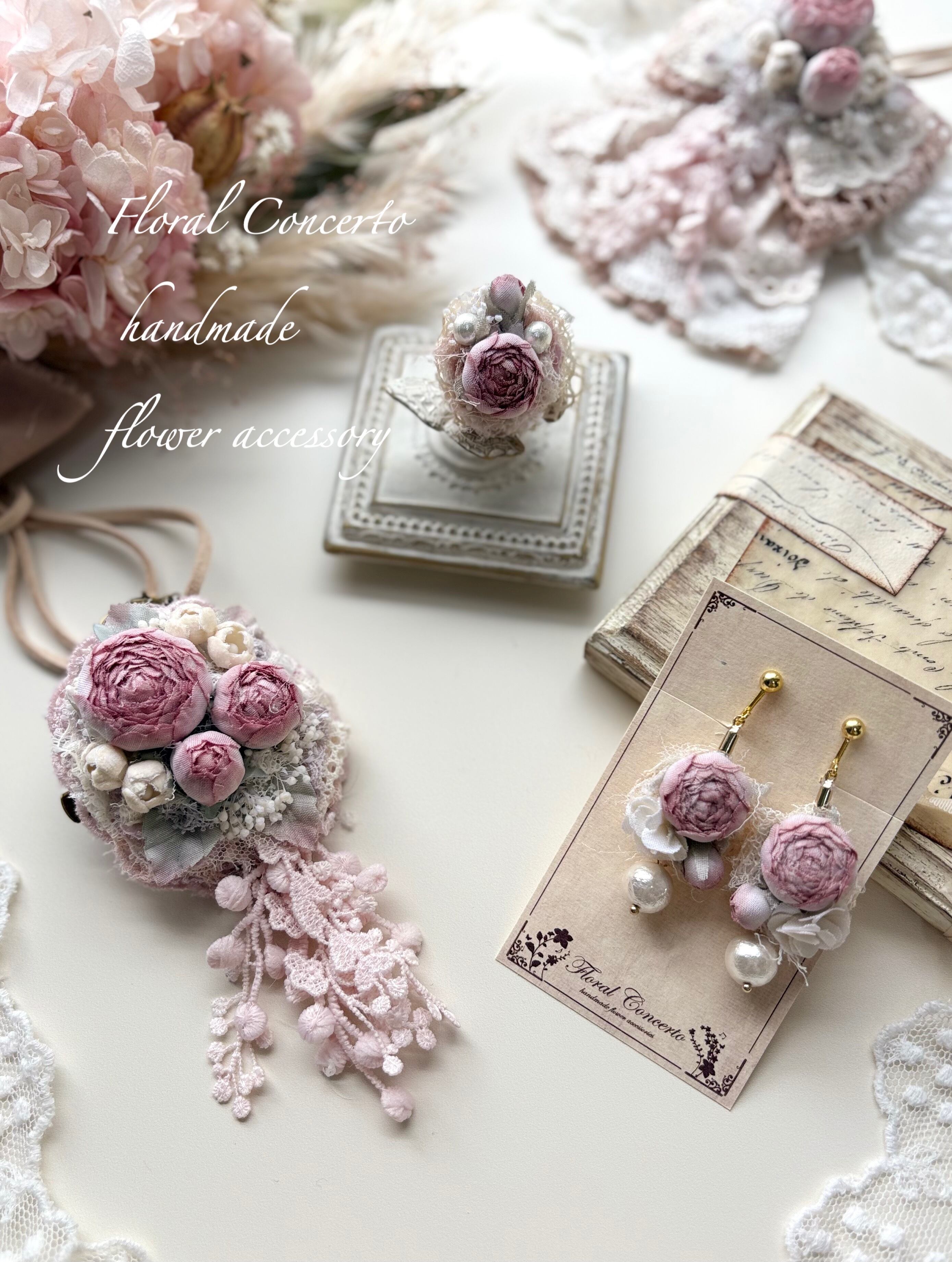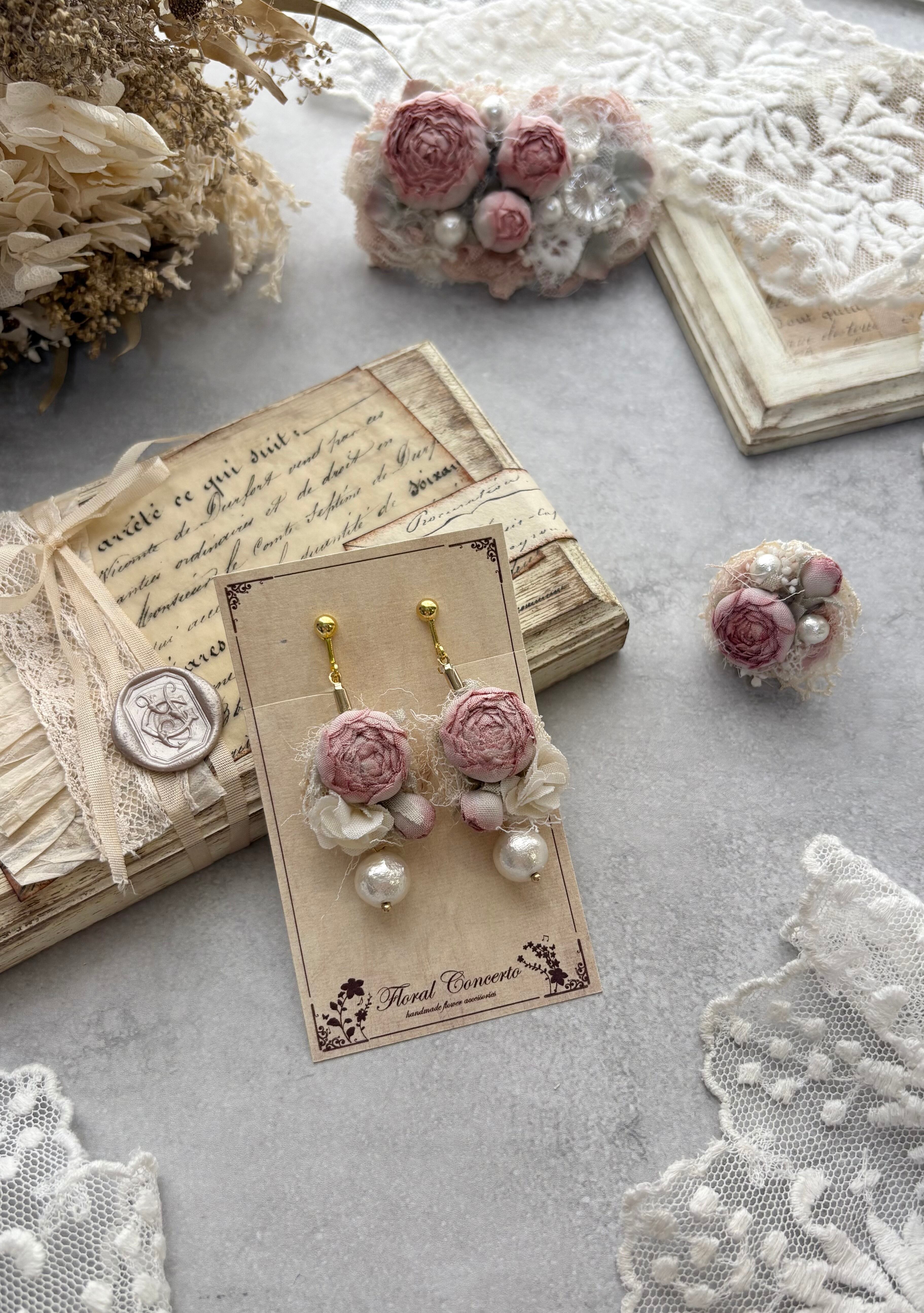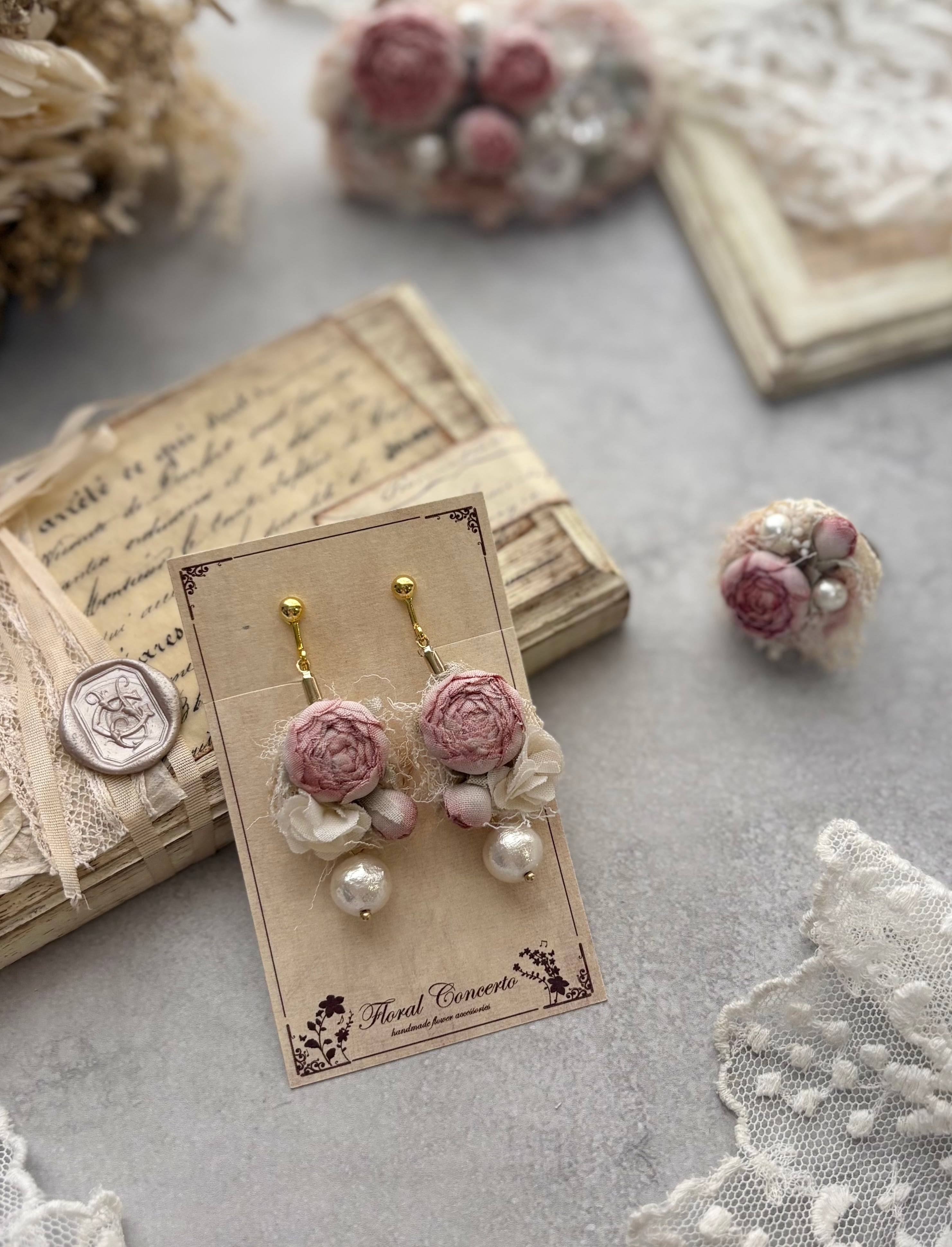 布花の薔薇のピアスです。