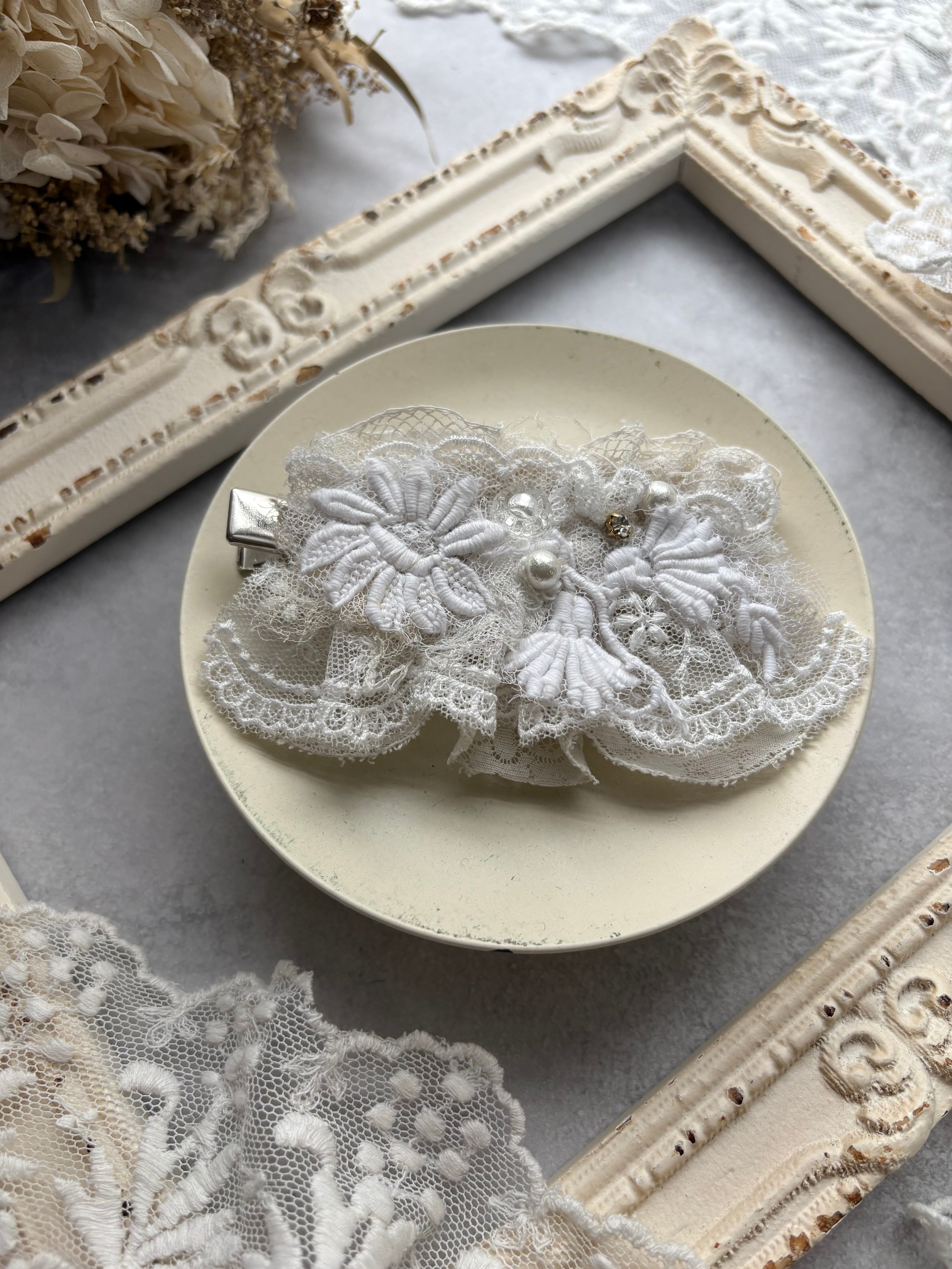 ホワイトレースのヘアクリップ