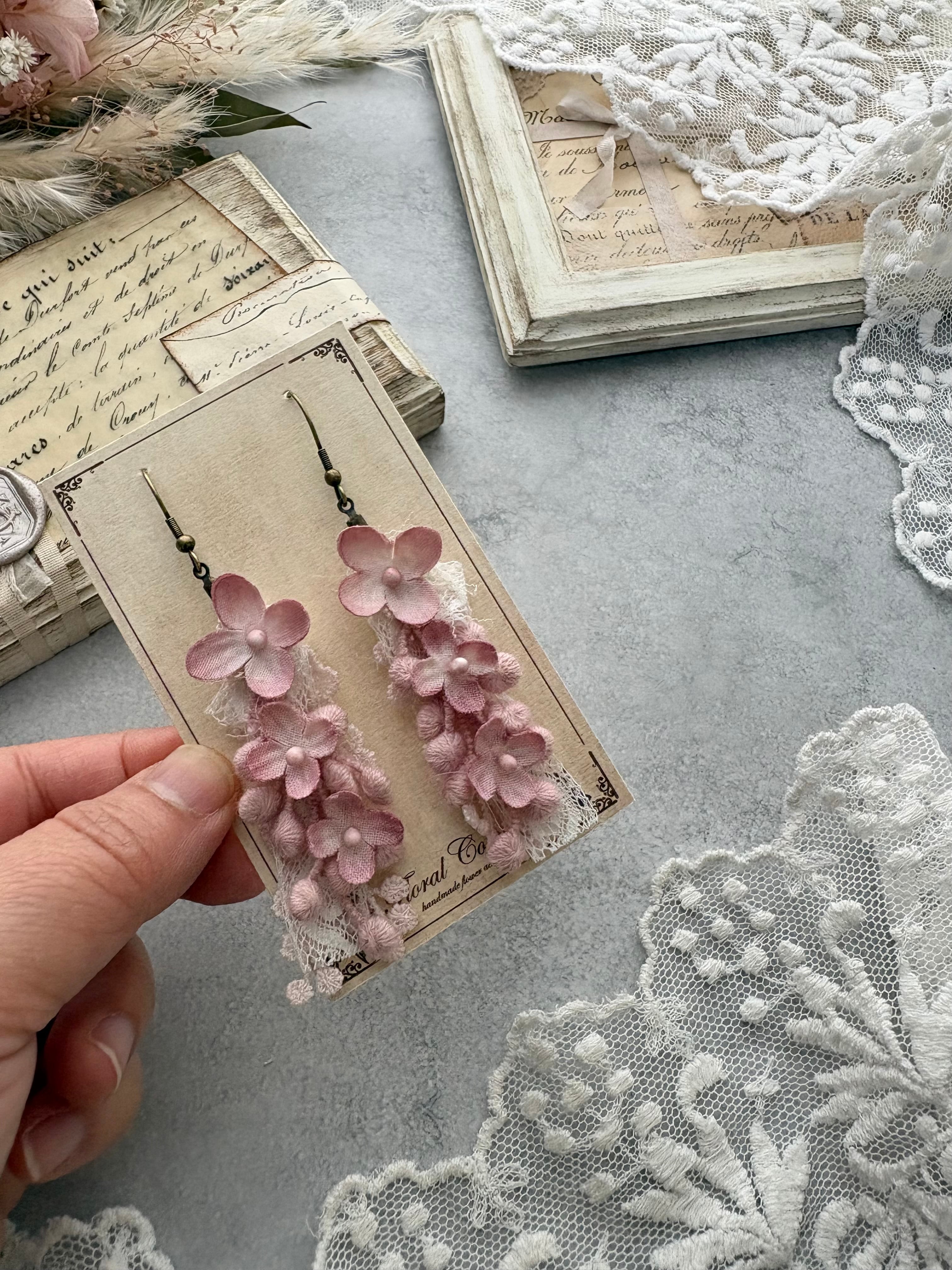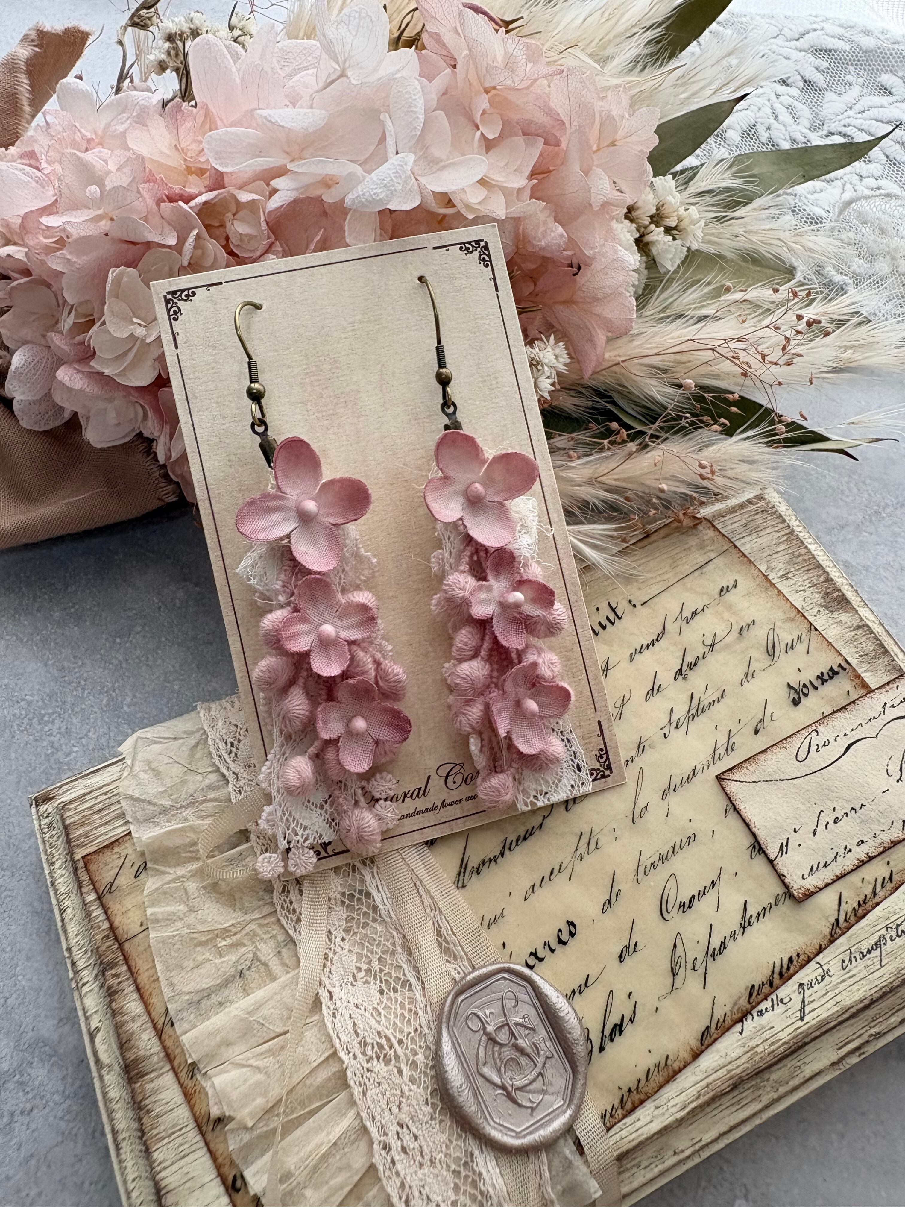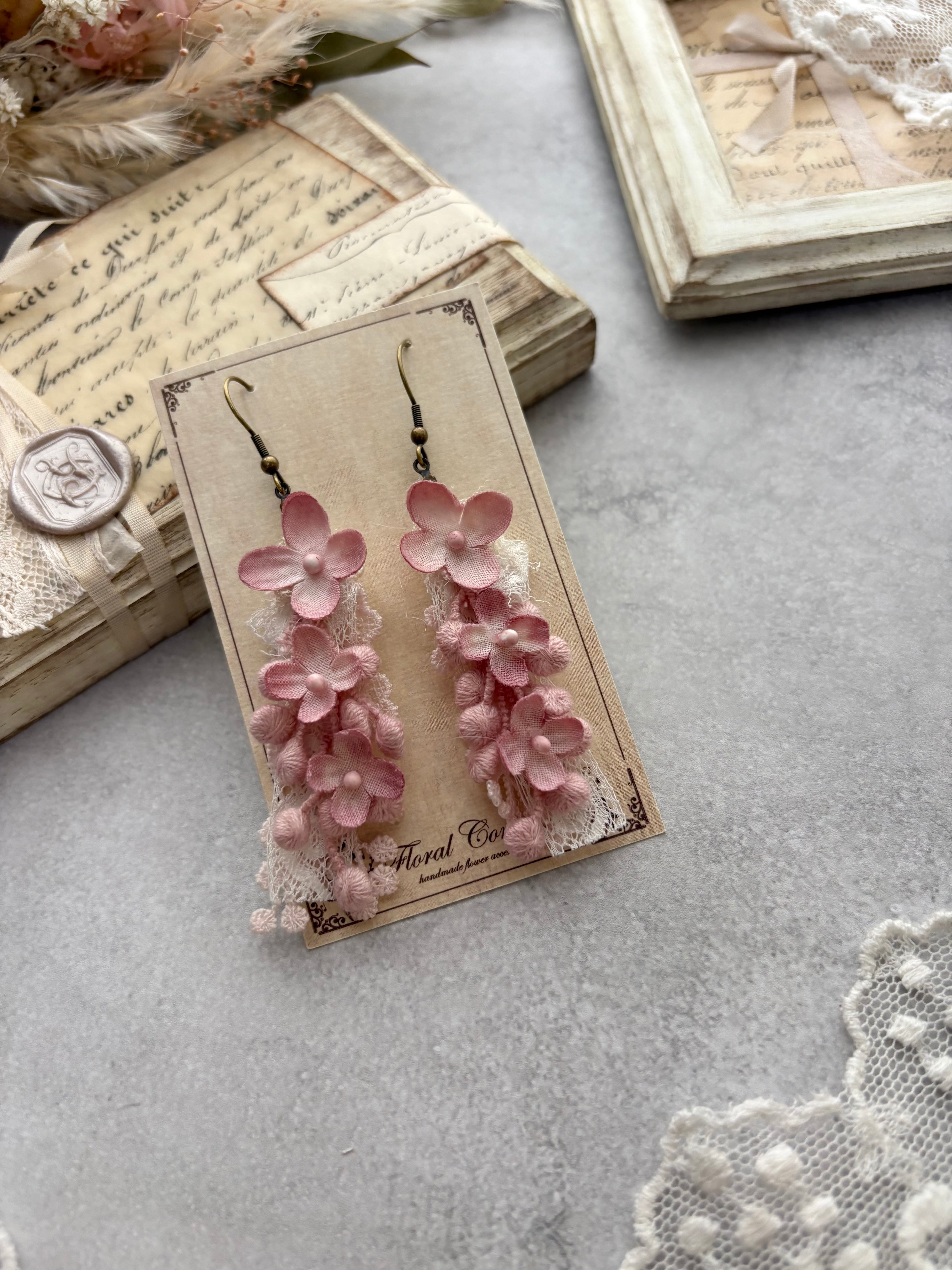 布花のライラックの耳飾りです。