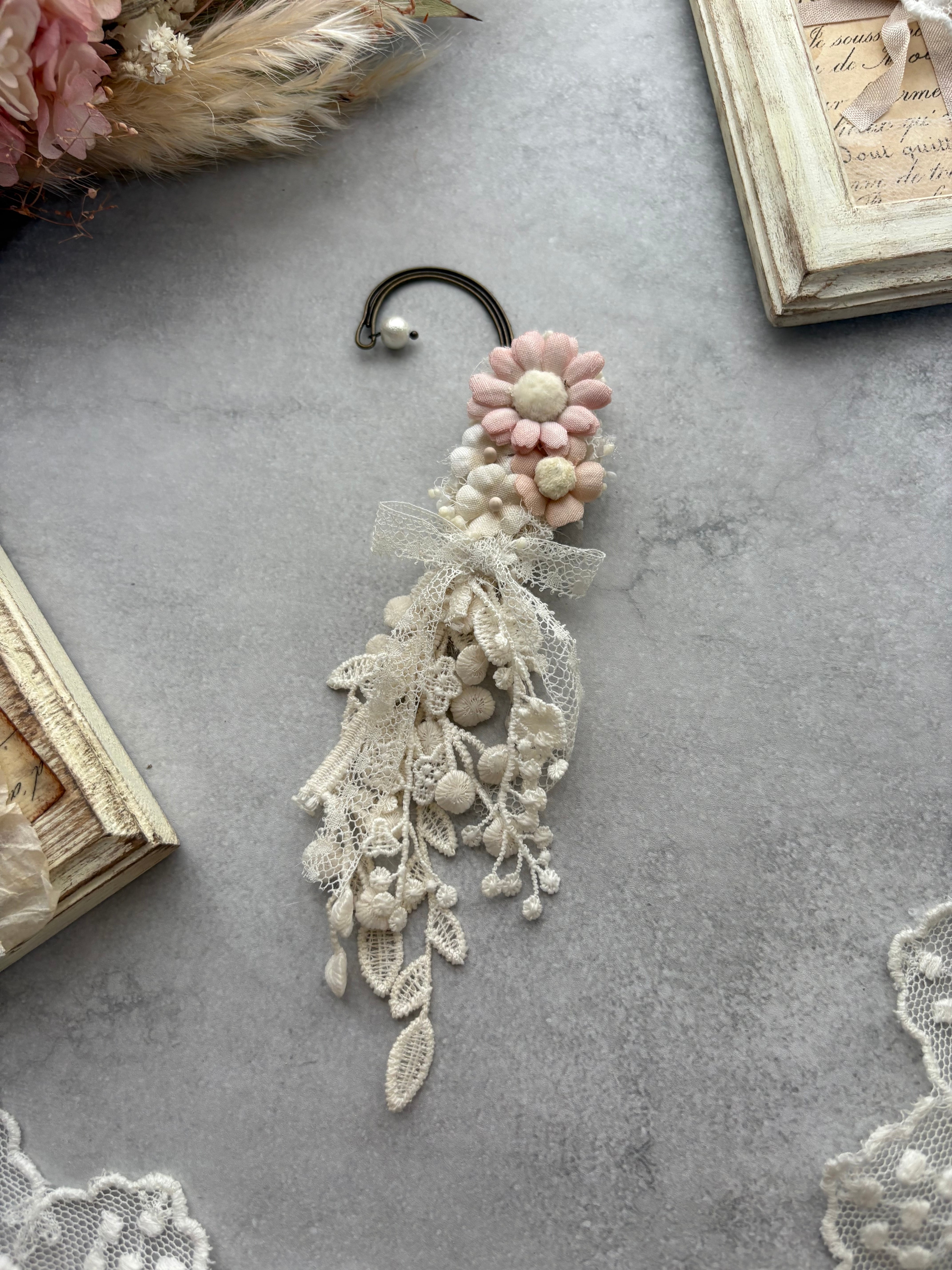 ピンクマーガレットのイヤーフック(左耳用)