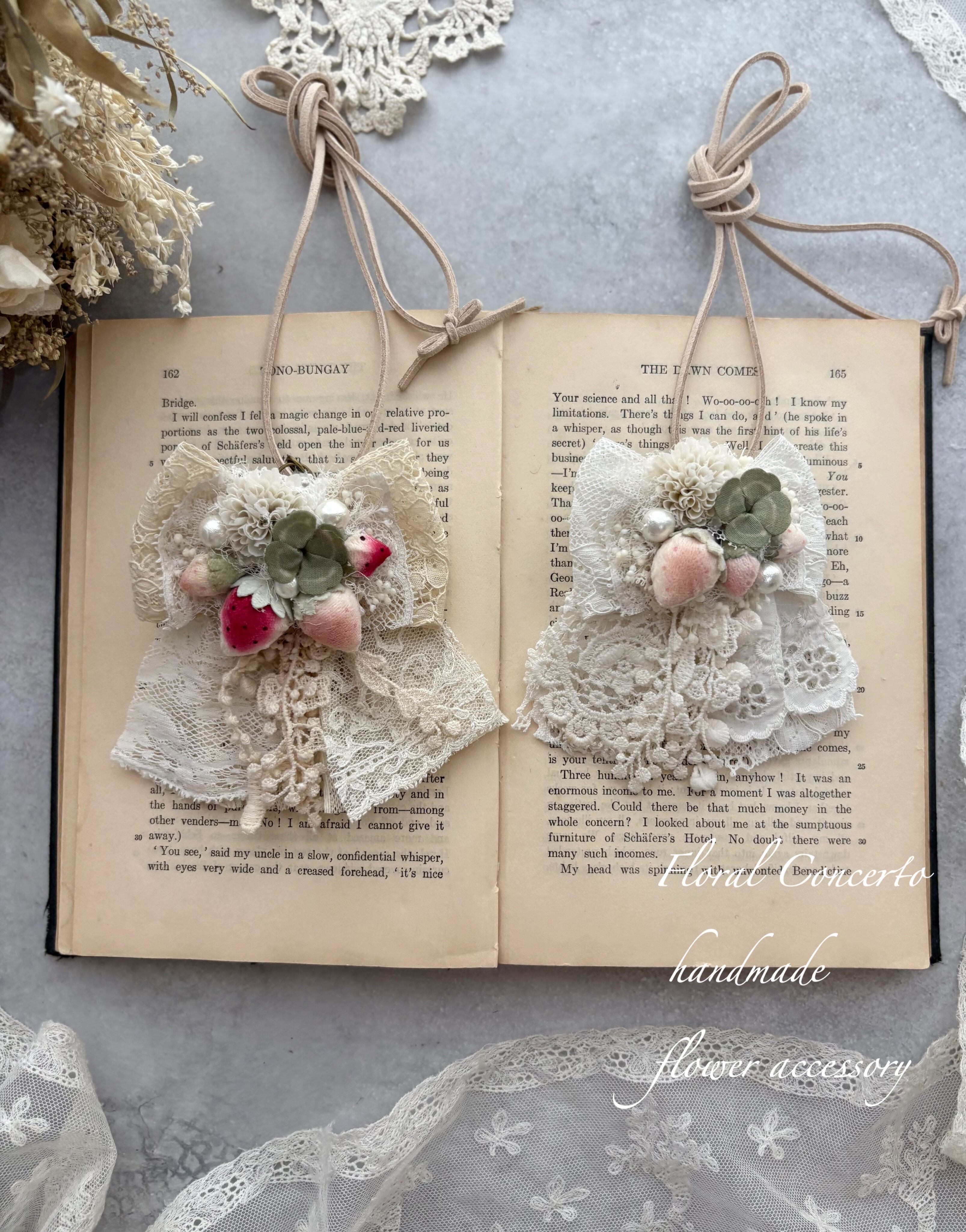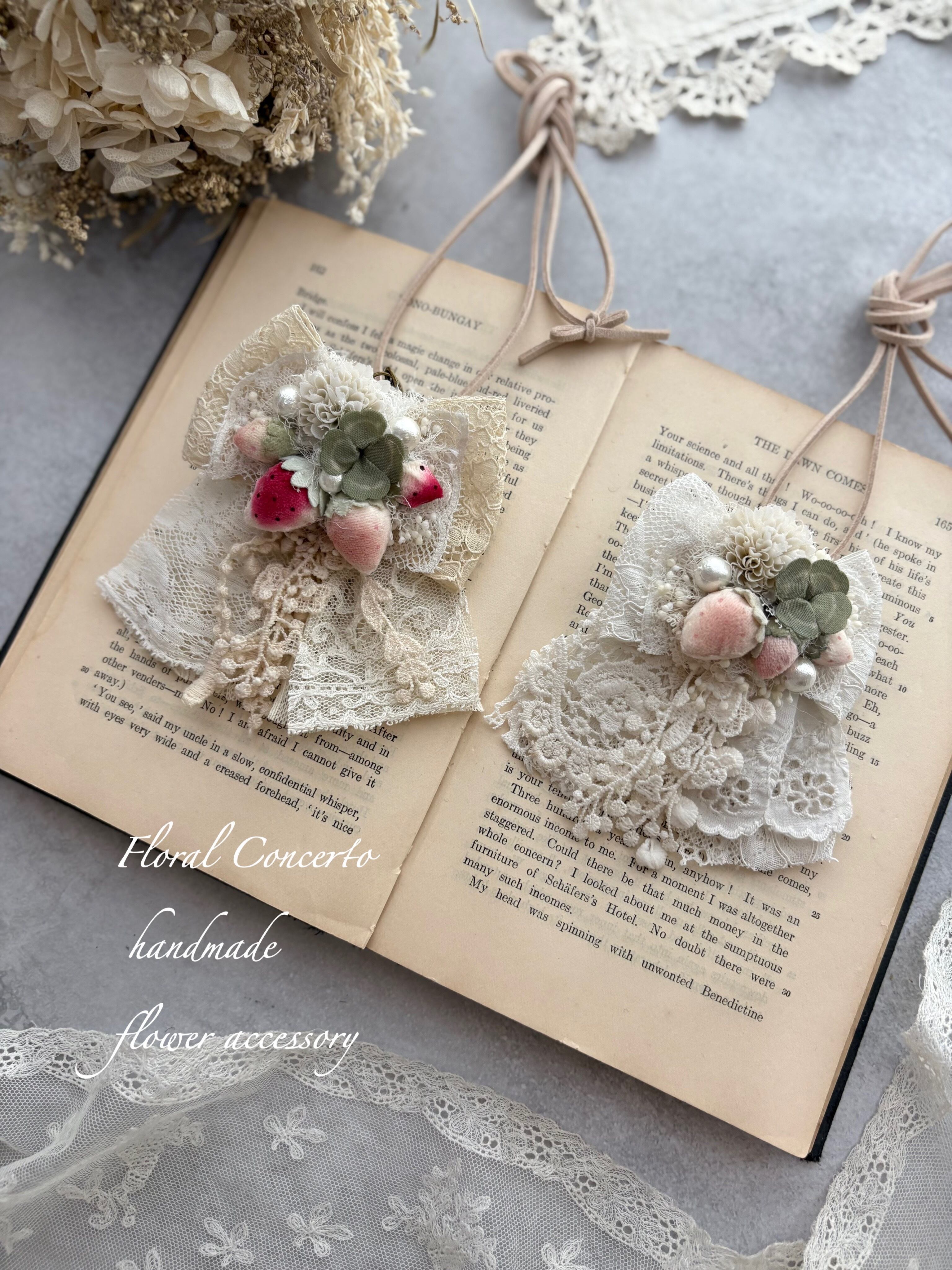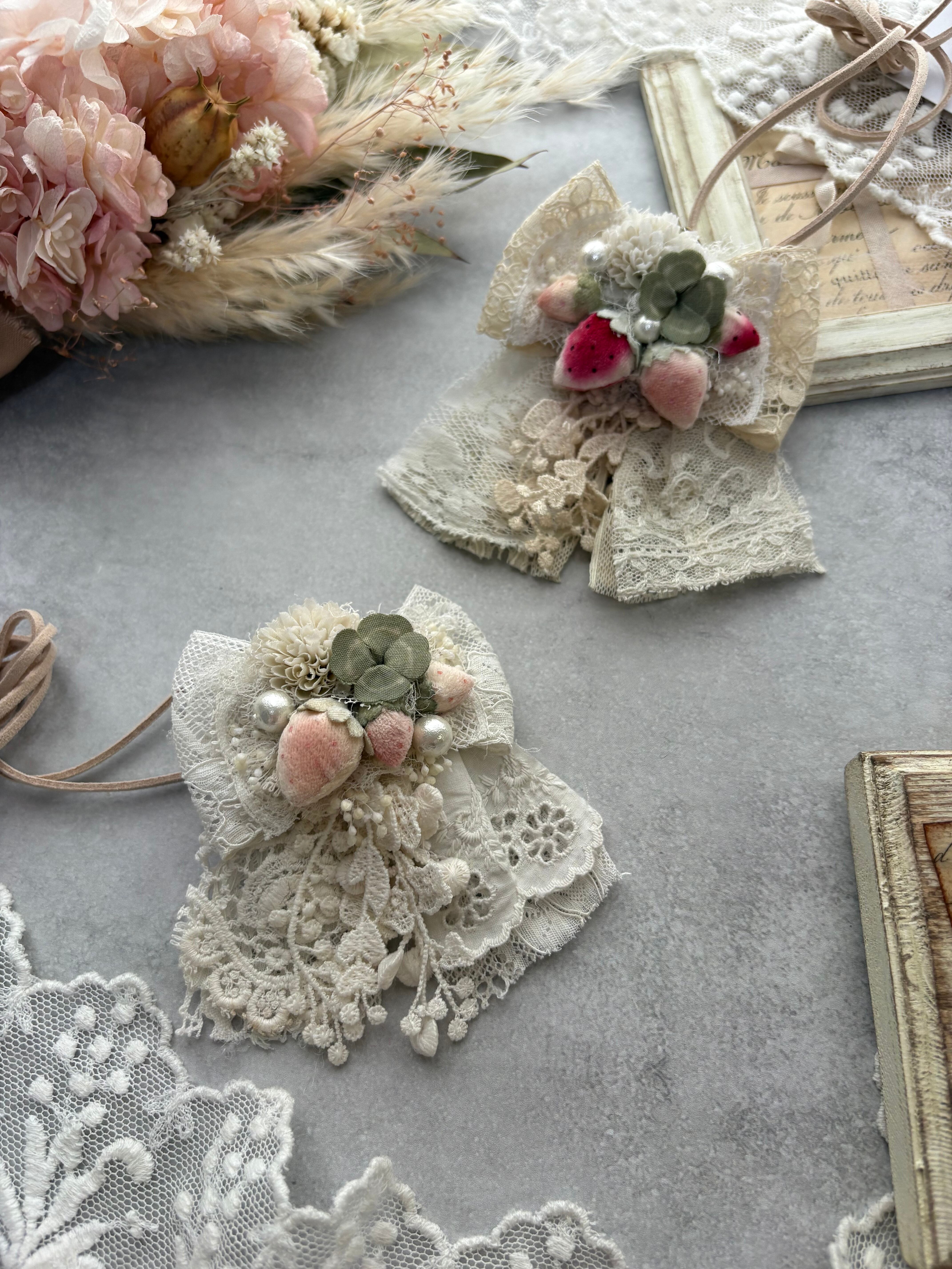 布花のいちごと白詰草の3wayネックレスです。