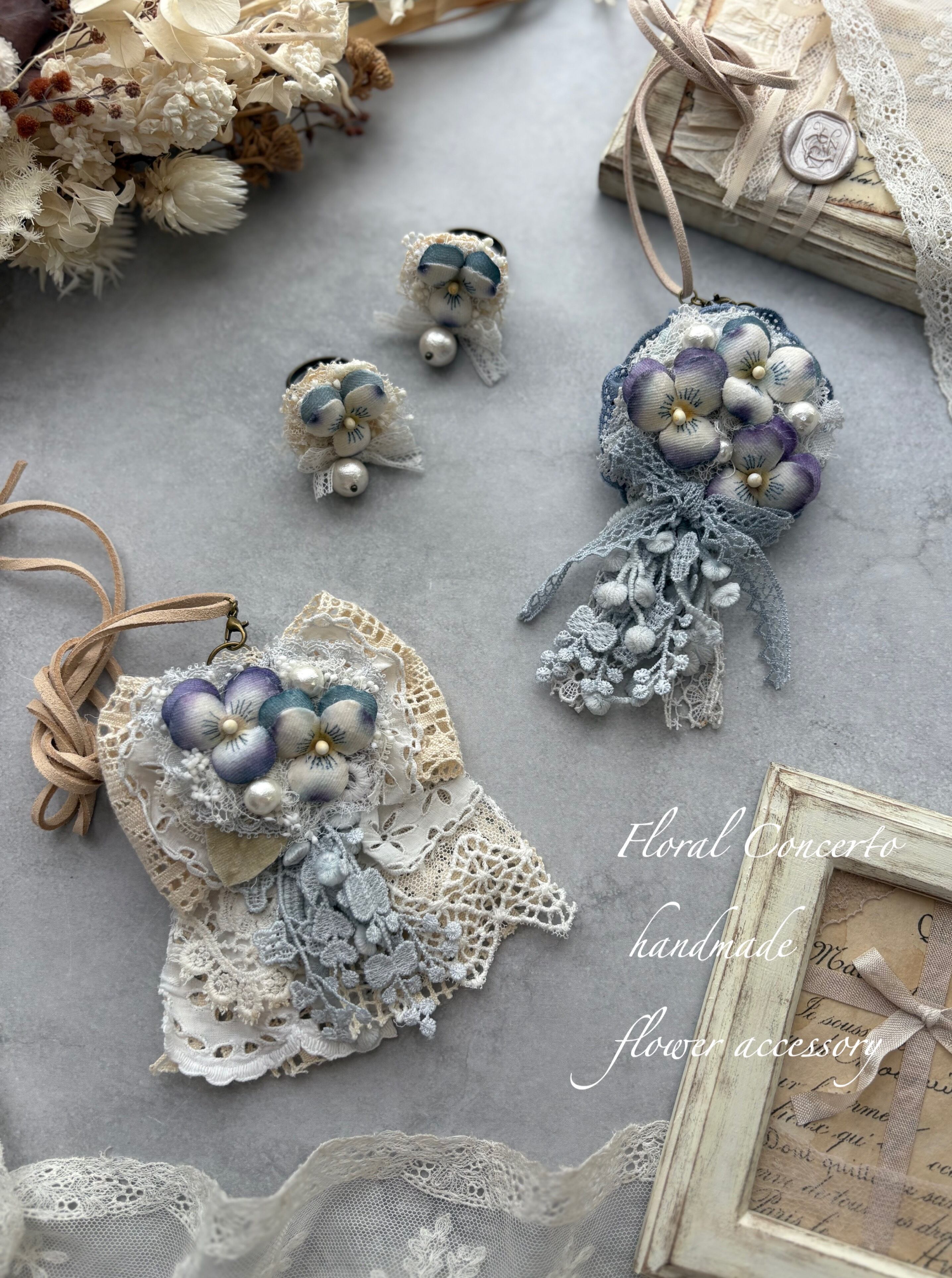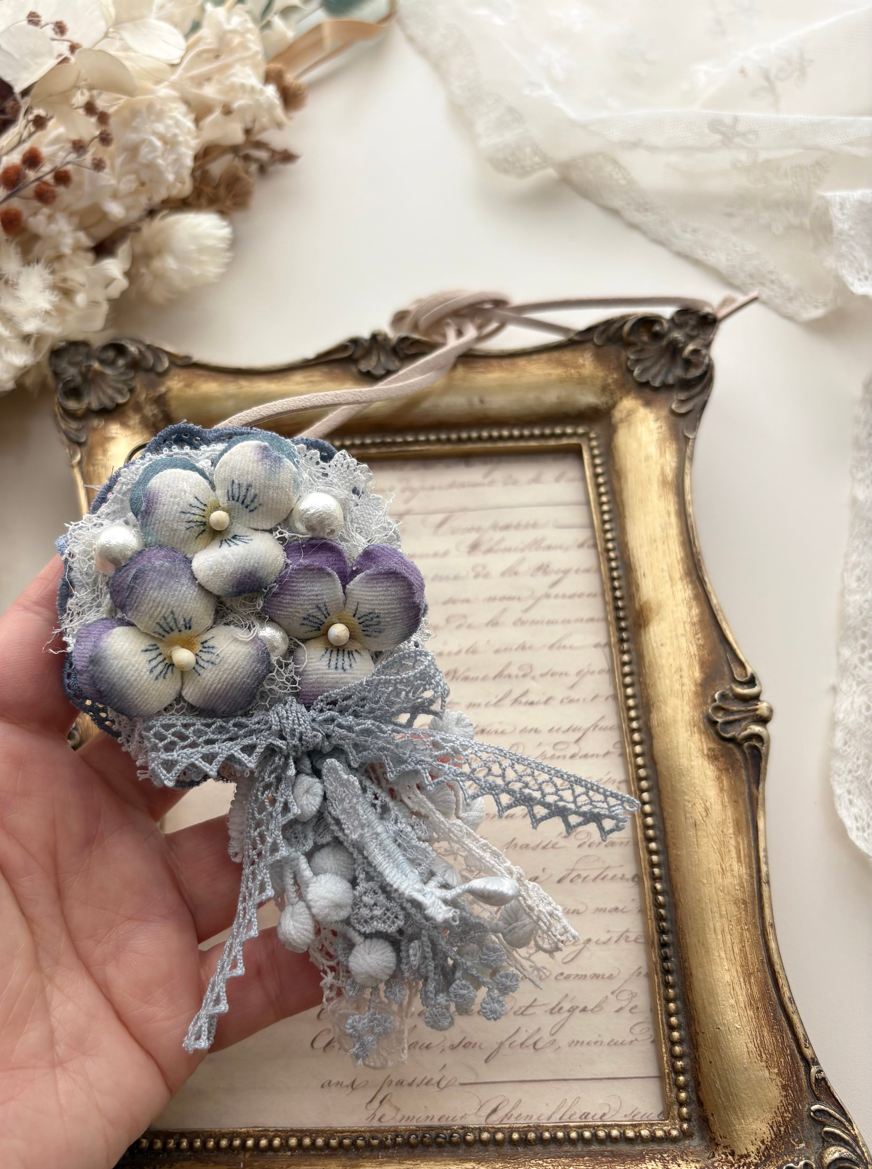 布花のビオラの3wayネックレスです。